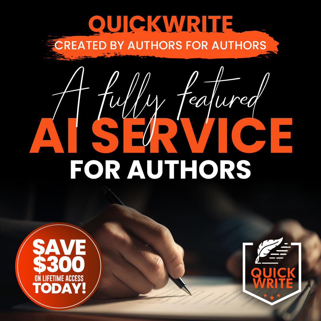 QuickWrite is a futuristic, life-changing, research-doing, word-writing, magical tool that allows fiction and non-fiction authors to get their books written 10X faster. Unlike more general-use AI tools, this one is SPECIFICALLY for authors and it’s specially designed with options so you don’t have to mess around with complicated prompts. For a special, discounted lifetime subscription, go to this link and choose whether you plan to primarily use the tool for fiction or non-fiction.